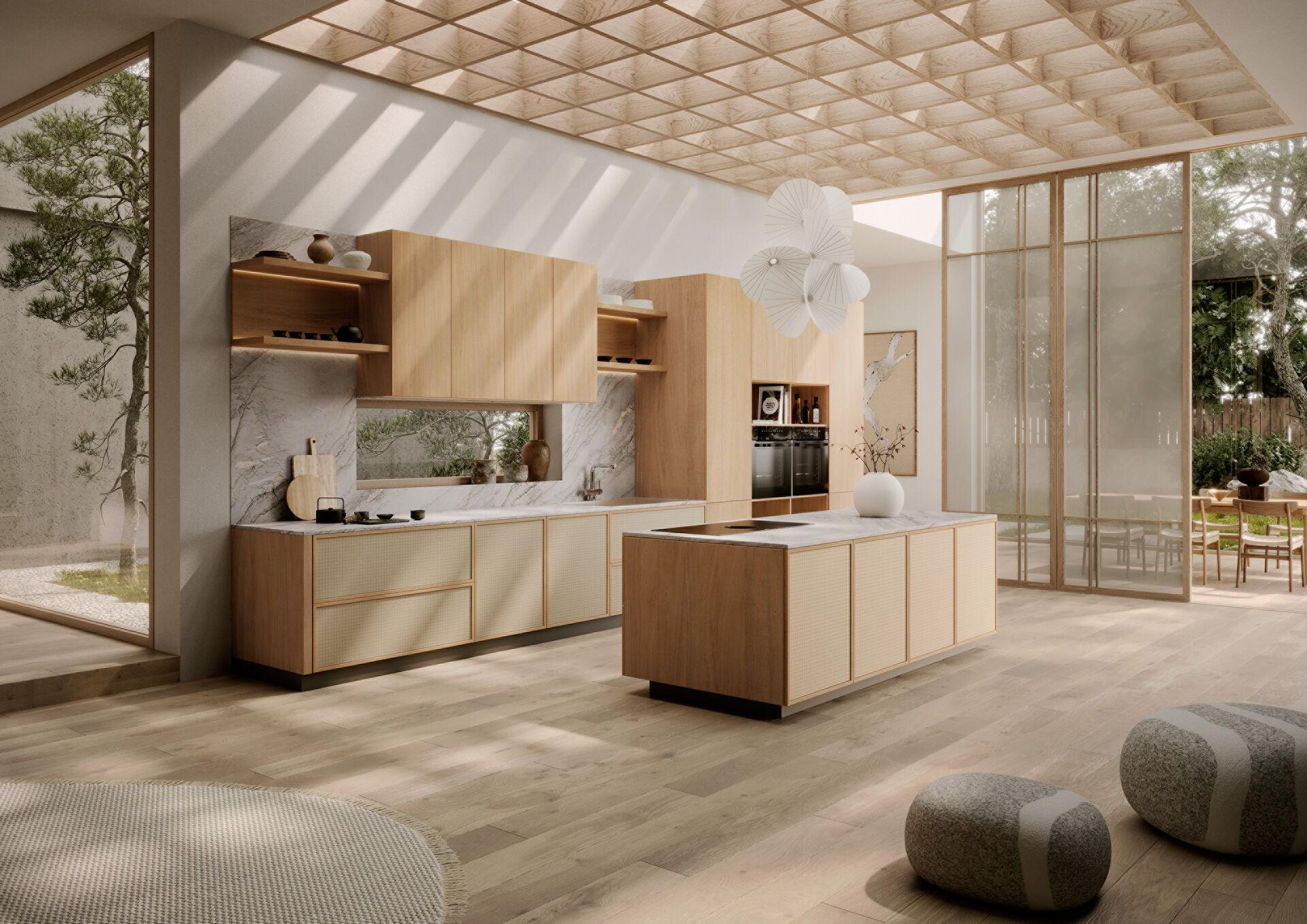Im Trend liegt der Stil „Japandi“, der japanische Schlichtheit mit skandinavischer Wärme verbindet. Warme Naturtöne wie Sand, Macchiato und Coffee dominieren die Farbwelten. Kücheninseln aus Naturstein, matte Oberflächen bis hin zu matten Kochfeldern sowie sanfte Rundungen bestimmen das Design. Technisch rücken platzsparende Lösungen wie die neue Dampfschublade in den Fokus. Stauraumkonzepte mit größerer Tiefe und schmaleren Zargen bieten mehr Volumen auf begrenzter Fläche. Auch der Wasserplatz wird als multifunktionale Workstation geplant – mit Trinkwasseraufbereitung, Mülltrennung und Vorratsorganisation.