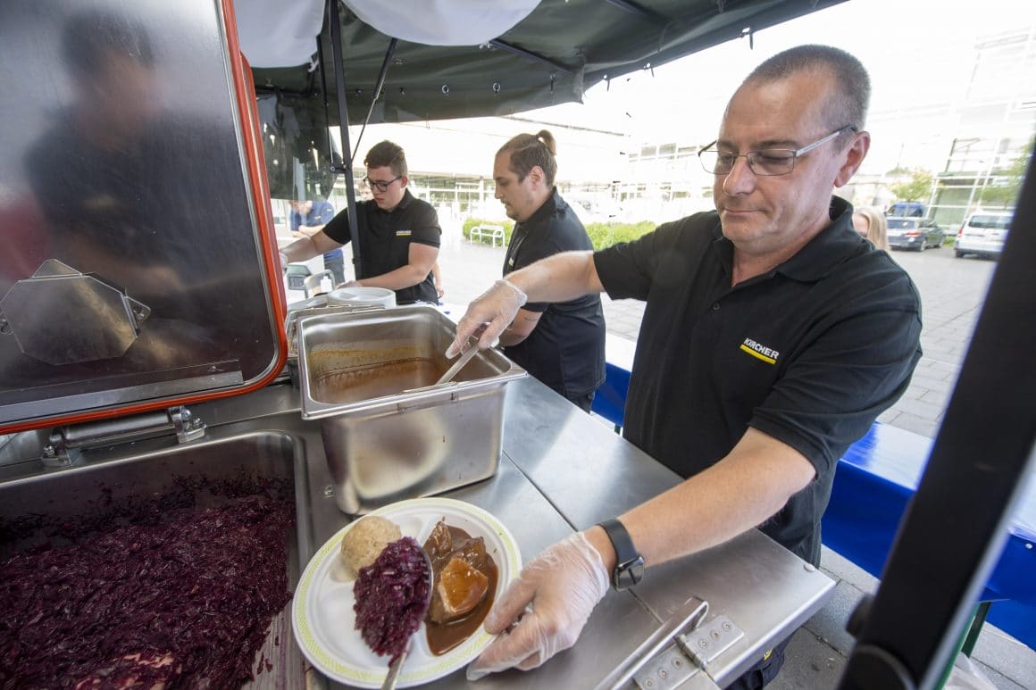 Kärcher stellte kurzerhand dringend benötigte Technik im Wert von 250.000 Euro zur Verfügung und schickte eine eigene Feldküche und Mitarbeiter ins Krisengebiet. Sie bekochten vier Wochen lang die Hilfsorganisationen vor Ort.