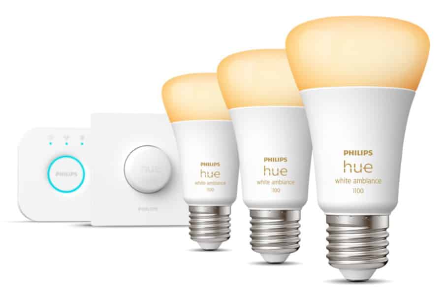 Unsere Empfehlung: Das E27 Starter Set mit Smart Button der Philips Hue Serie ist dein perfekter Einstieg in die smarte Beleuchtung. Preis: 130 Euro.