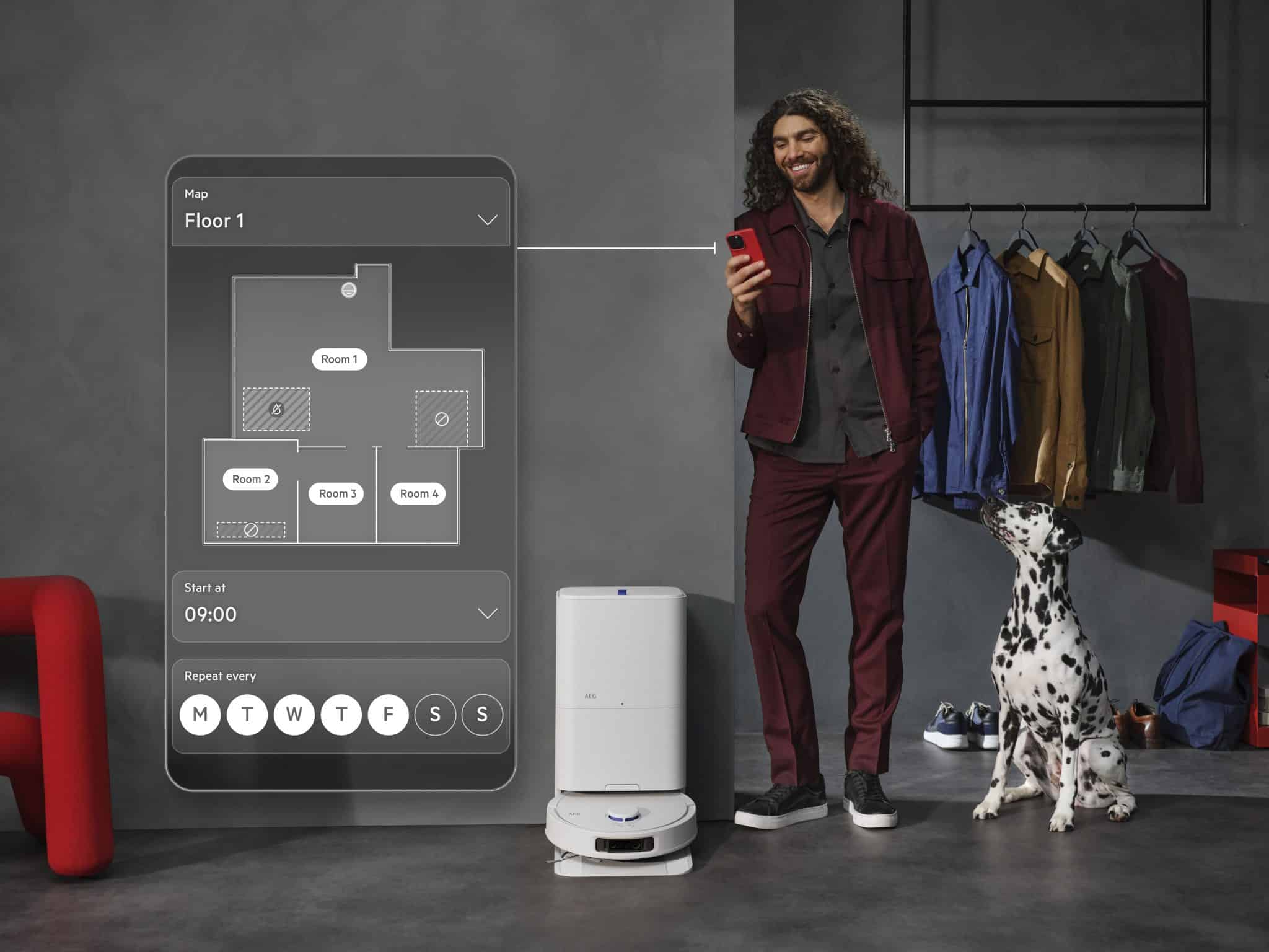 - Die Steuerung erfolgt intuitiv über die AEG App oder per Sprachsteuerung – sowohl von zuhause als auch unterwegs. Reinigungspläne lassen sich einfach erstellen, Reinigungsbereiche gezielt definieren und der aktuelle Reinigungsfortschritt in Echtzeit verfolgen.