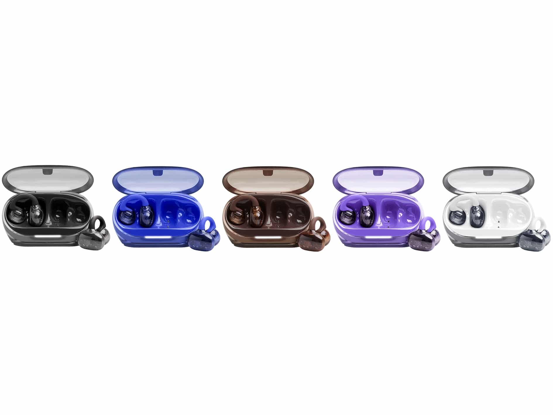 Die JBL Soundgear CLIPS nutzen Luftleitungstechnologie, die Umgebungsgeräusche wahrnehmbar lässt und gleichzeitig kraftvollen Bass liefert. Dank vier Mikrofonen mit KI-Algorithmus sind auch Telefongespräche unterwegs klar verständlich. Das flexible TPU-Design passt sich dem Ohr an, während fünf semi-transparente Farben mit Metallic-Touch die Clips zum modischen Accessoire machen.