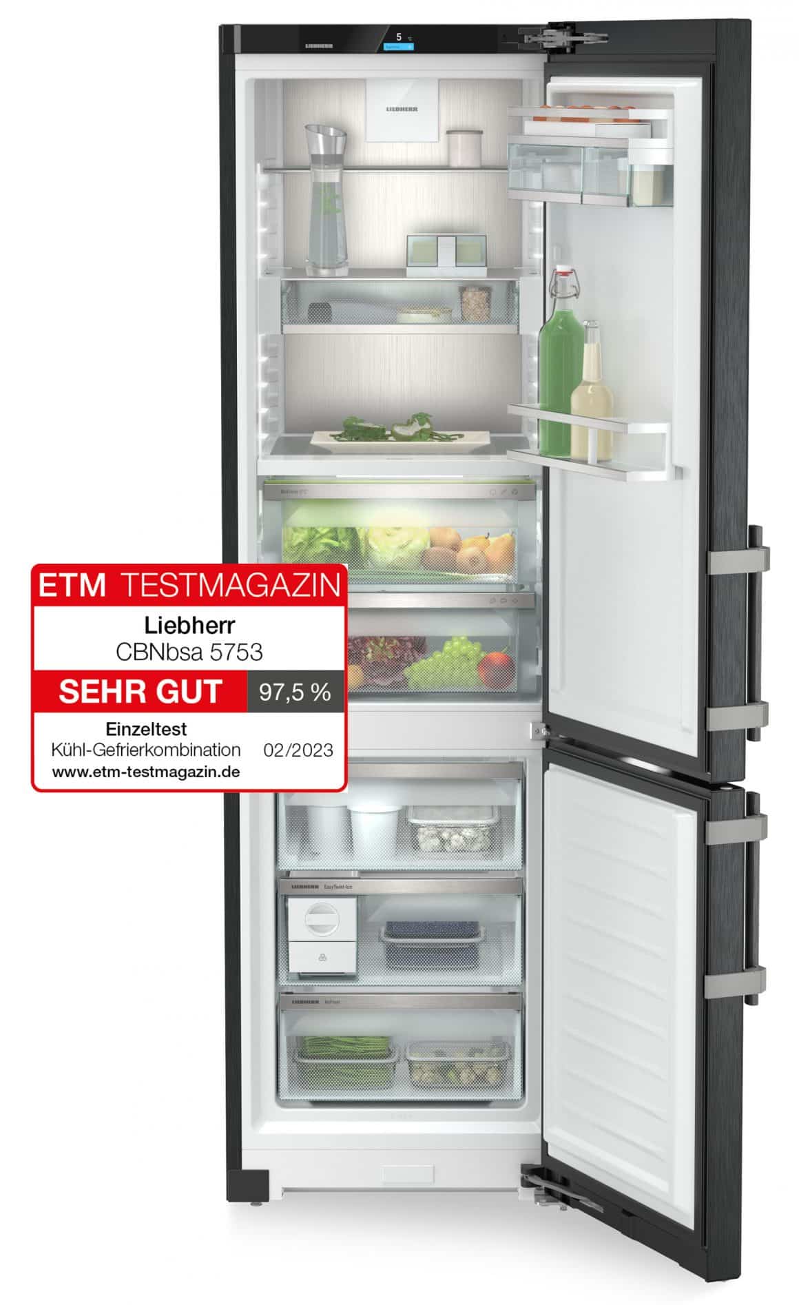 Mit dem Testurteil „sehr gut“ und einer Gesamtnote von 97,5 % überzeugte die Kühl-Gefrierkombination CBNbsa 5753 von Liebherr im Einzeltest des ETM Testmagazins. Damit setzt Liebherr die Reihe erfolgreicher Testergebnisse und Auszeichnungen eindrucksvoll fort.