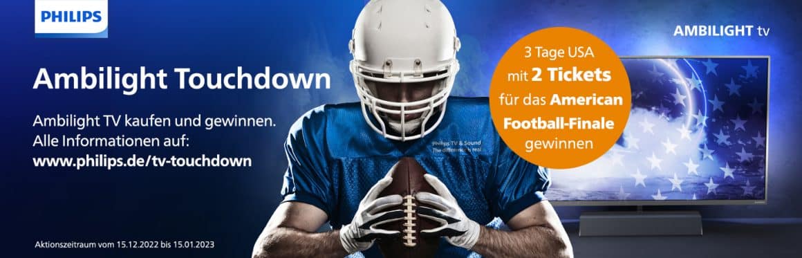 Du suchst einen neuen Fernseher zu Weihnachten oder planst den Kauf eines TVs, um dein Heimkino auf den neuesten Stand der Technik zu bringen? Dann kannst du bei der Philips American Football-Aktion mit etwas Glück beim Kauf eines Philips TVs mit Ambilight-Funktion richtig dicke Gewinne einsammeln. Bei der Aktion setzt Philips voll auf die Trendsportart American Football, die gerade aus den USA nach Europa kommt und hierzulande immer mehr begeisterte Anhänger findet.