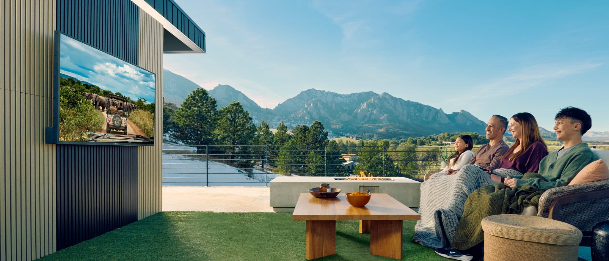 Durch die IP55 Zertifizierung ist die Allwettertauglichkeit garantiert, sodass Nutzer sich keine Sorgen um Regenschauer oder extreme Temperaturen von -30 °C bis +50 °C machen müssen. Die beiden integrierten 30-Watt-Lautsprecher, der Subwoofer und die Dolby Atmos-Unterstützung sorgen für beste Audioqualität. Über Google TV können alle beliebten Apps und Streaming-Dienste im Garten genutzt werden, sodass Sie die neuesten Filme und Lieblingsserien in jedem Außenbereich erleben können.