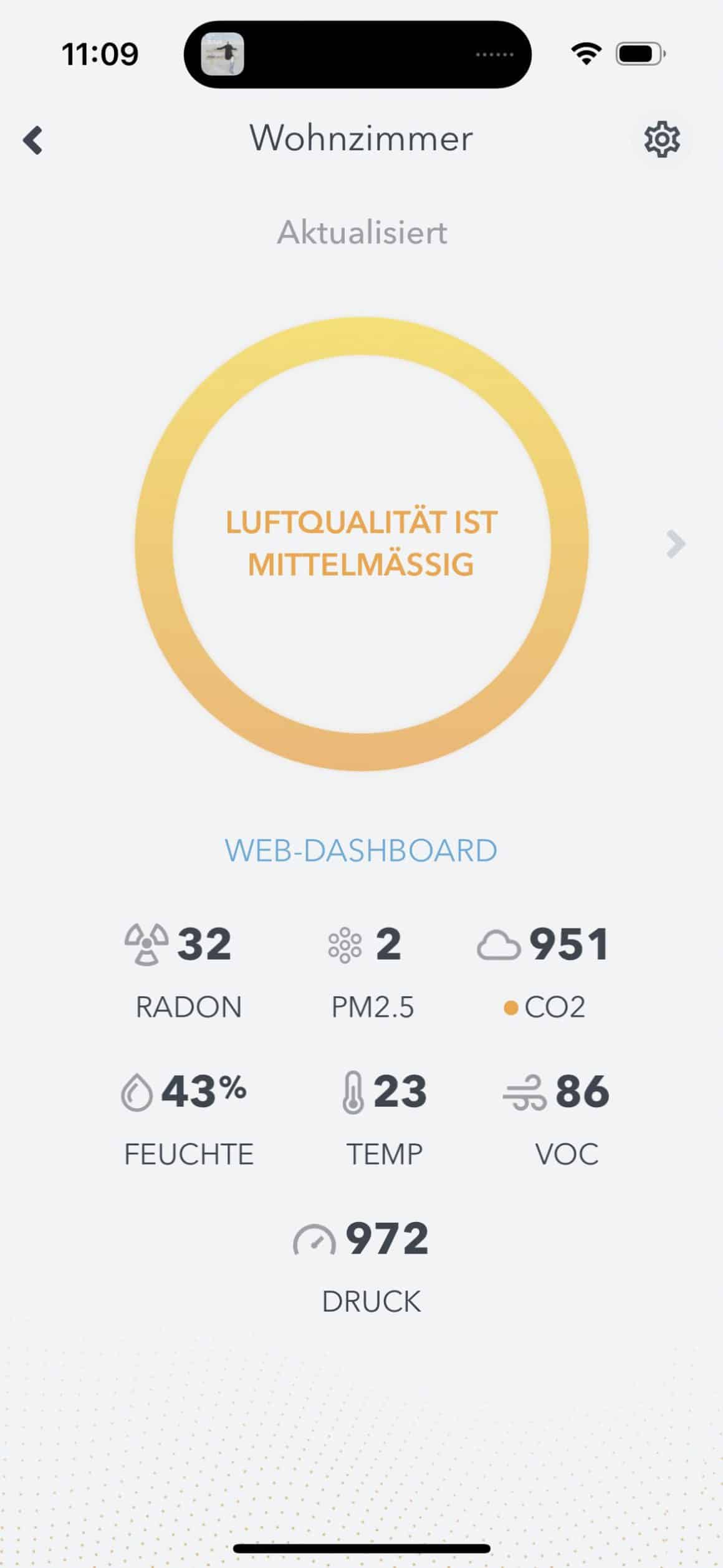 4. Chemische Gase: VOCs, also luftgetragene Chemikalien aus alltäglichen Haushaltsprodukten, wirken sich negativ auf die Gesundheit aus. Auch hier werde ich alarmiert, wenn Grenzwerte überschritten werden.