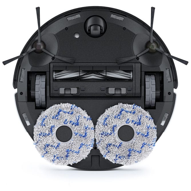 Der Deebot X1 Omni von Ecovacs zeigt, wohin der Trend geht und kommt mit einer multifunktionalen Dockingstation. Diese geht in ihrem Funktionsumfang weit über die Möglichkeiten einer klassischen Ladestation hinaus. Hier wird der Staubbehälter entleert, das Schmutzwasser gegen Frischwasser ausgetauscht sowie die beiden rotierenden Wischmopps gewaschen und nach getaner Arbeit zusätzlich mit Heißluft getrocknet.